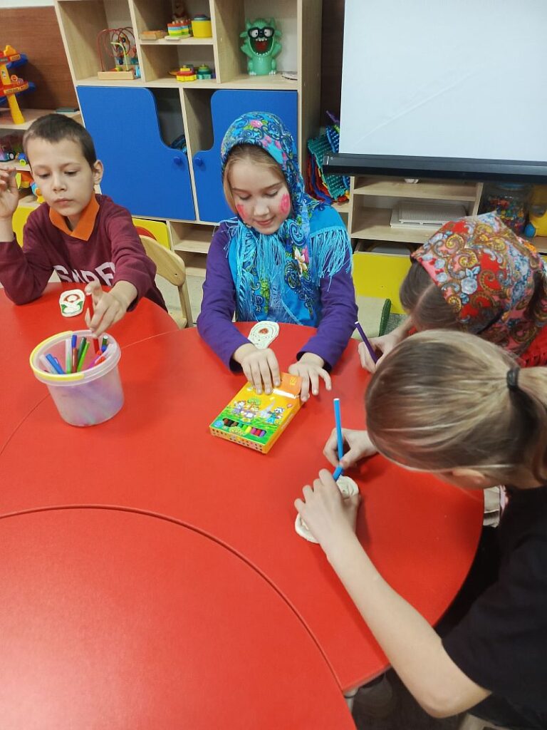 Далее участников мероприятия ждали практические задания, которые все любят и ждут всегда с нетерпением: девочки наряжались в пестрые сарафаны и повязывали платки, наносили румянец, все играли в русскую народную игру «Ручеек». В игровой форме познакомились с другими национальными символами, научились рисовать узоры. На мастер-классе дети поработали художниками и создали свои собственные матрешки, украшая заготовки из соленого теста. Яркие, оригинальные, веселые – все игрушки радовали своим видом и расписными нарядами! На память о мероприятии ребята могли взять с собой созданные собственноручно сувениры.